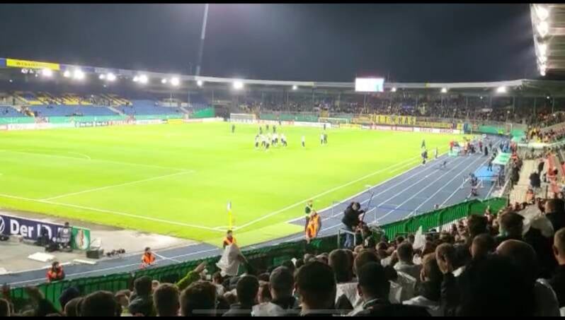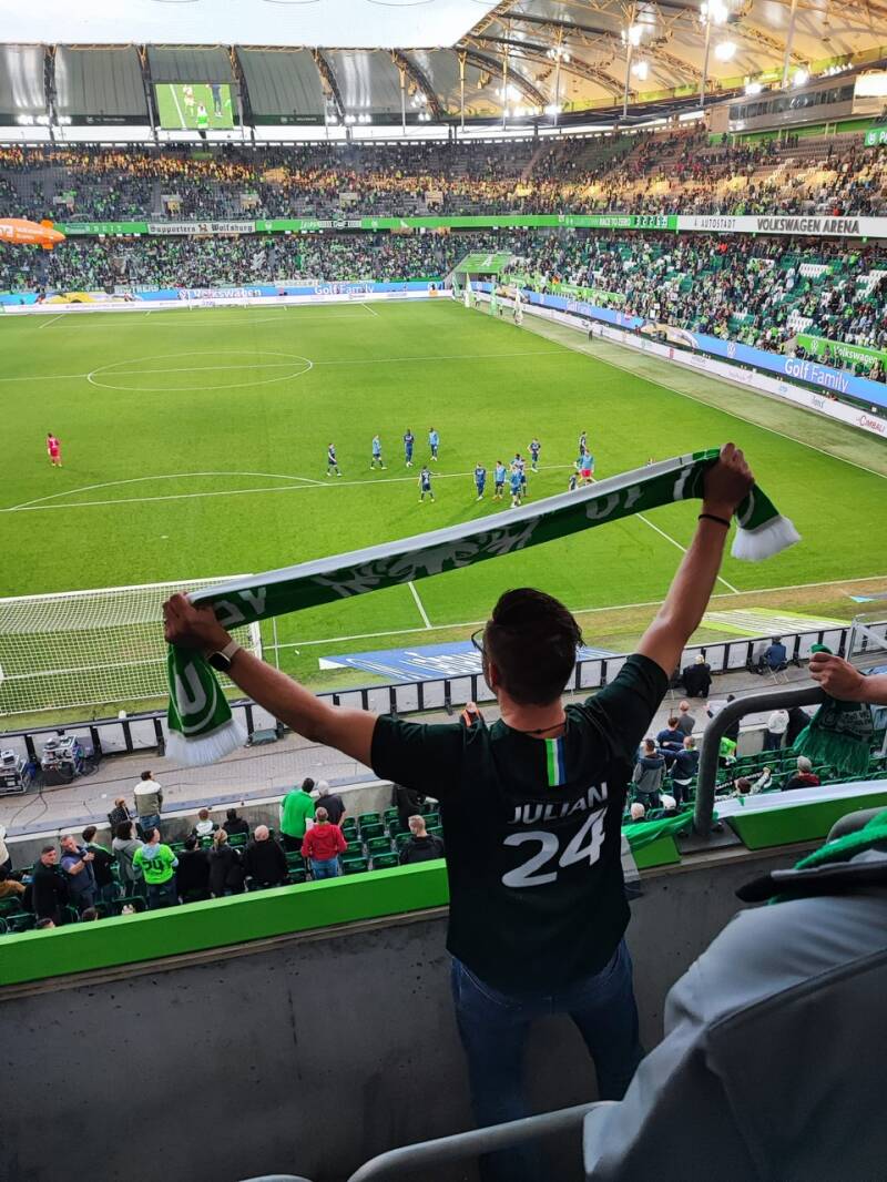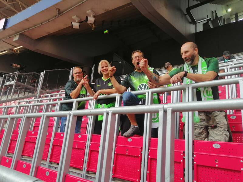 kowski hisst mit Matthias und Matti die VFL-Fahne und zündet ein Lichtlein zum Andenk-